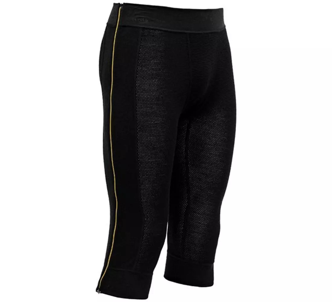 Le pantalon 3/4 zippé est fabriqué en 100 % laine mérinos, garantissant un confort exceptionnel et une grande élasticité.