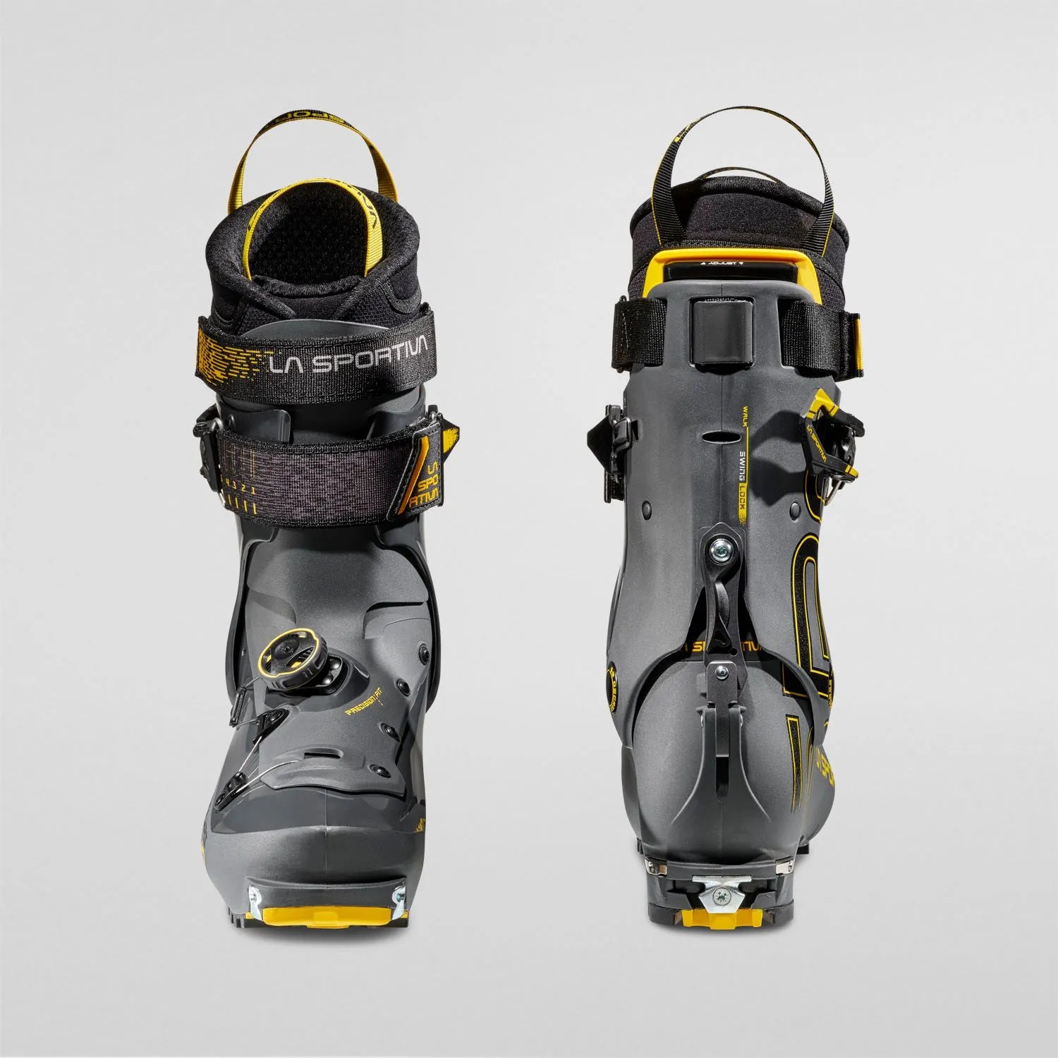 Informations supplémentaires Compatibilité des fixations: Tech Progressive Grade System™ : système de réglage rapide de l’inclinaison des guêtres avec insert de spoiler réglable en hauteur. Semelle et compatibilité des fixations: La Sportiva Grip Guard™ : semelle extérieure avec inserts anti-abrasion talon/pointe et durabilité exceptionnelle. Compatible avec les fixations TECH