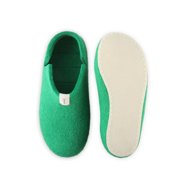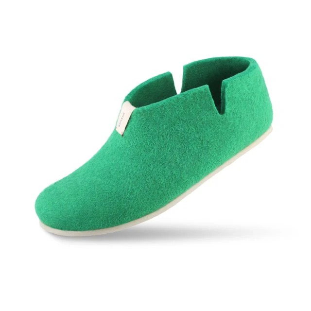 Matériaux : Dessus en laine naturelle provenant de moutons de Nouvelle-Zélande. sans mulesing. Semelles en caoutchouc crêpé naturel.