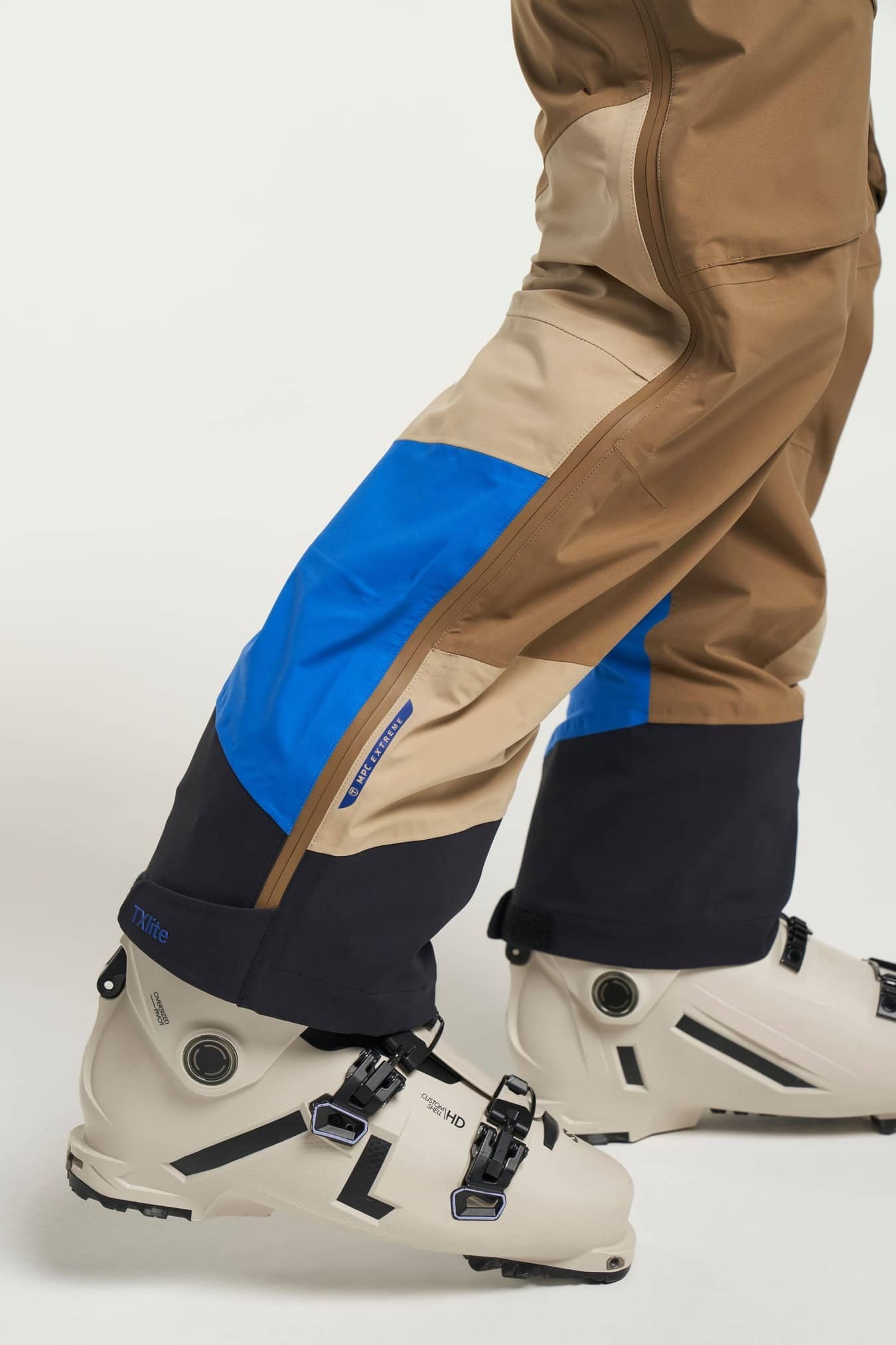 Des zips bidirectionnels aux chevilles assurent la ventilation et permettent de l'enfiler par-dessus des chaussures ou des bottes de ski, et un crochet pour chaussures à la cheville assure un maintien optimal.