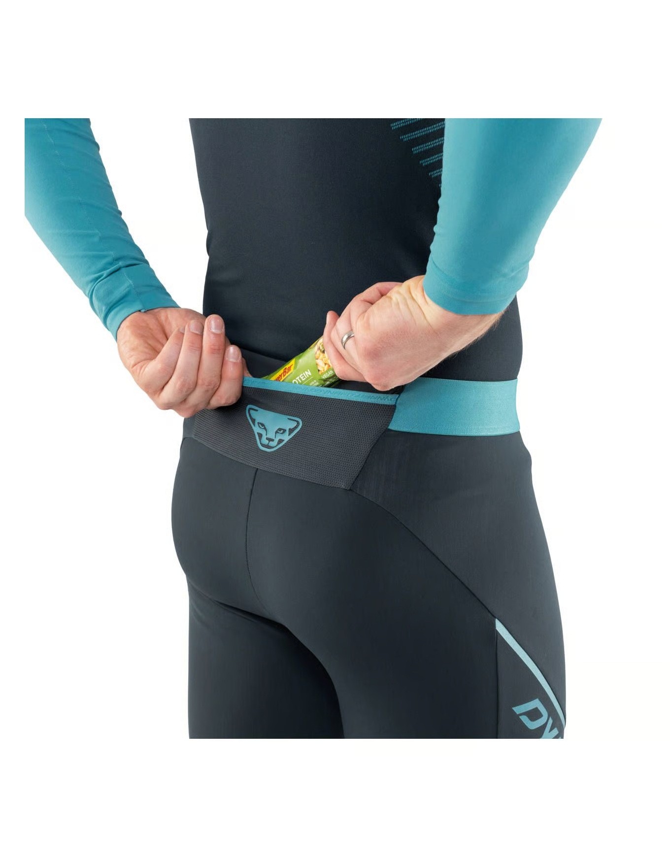 Sa ceinture extensible assure un ajustement sûr et confortable. Une poche arrière en filet permet de ranger de petits objets comme un gel ou une barre énergétique.