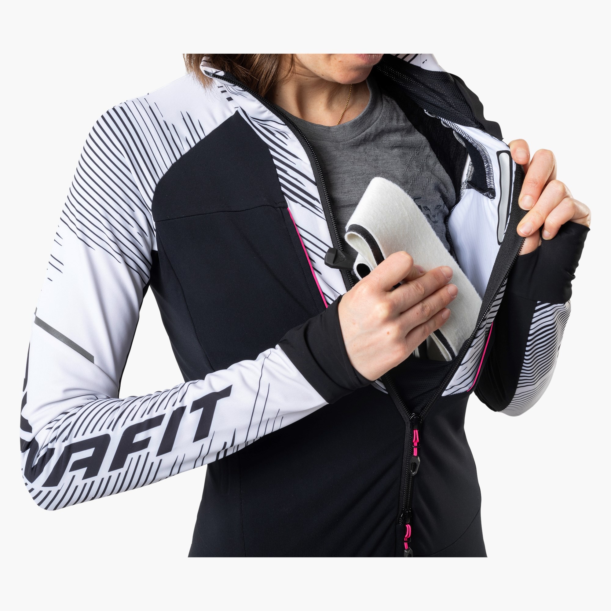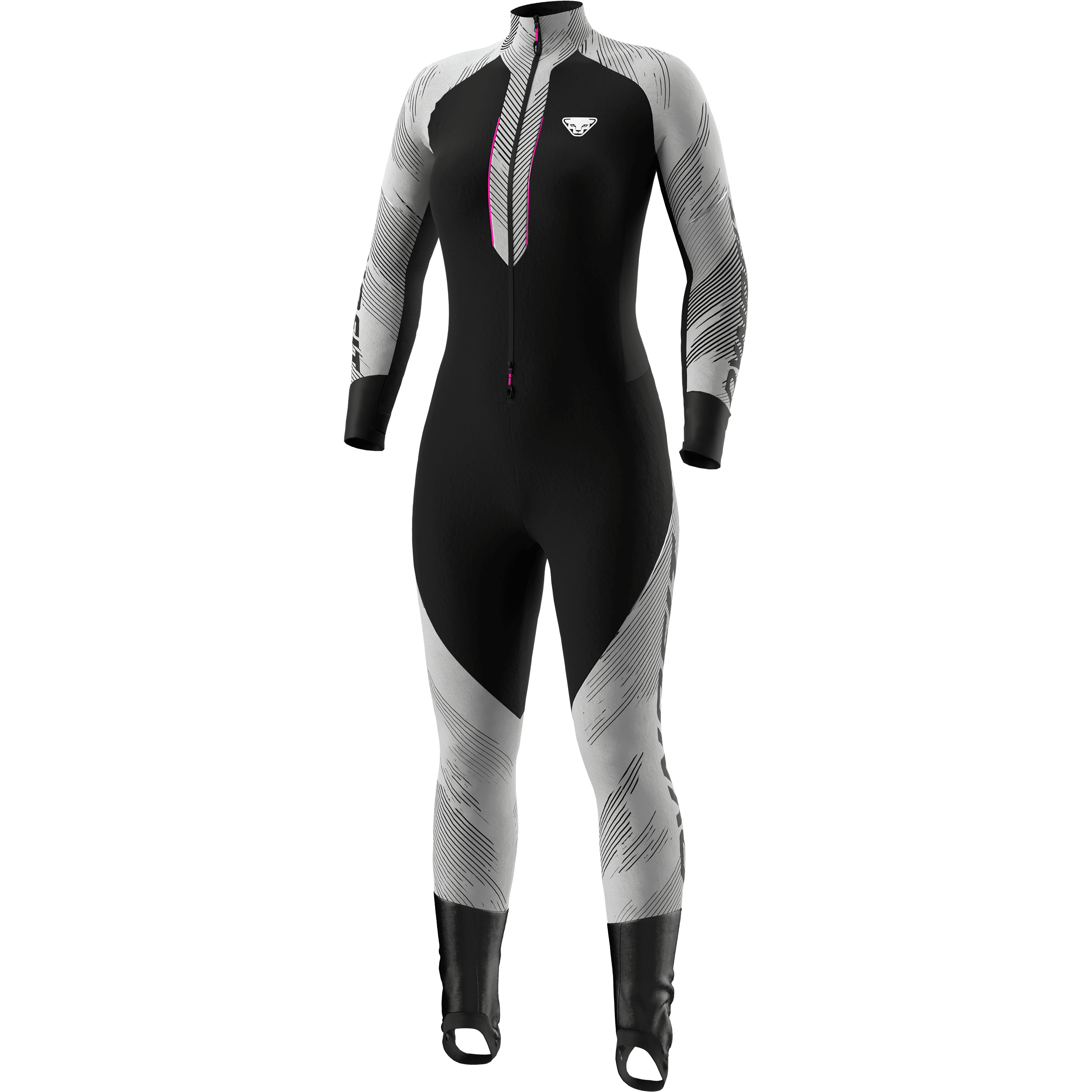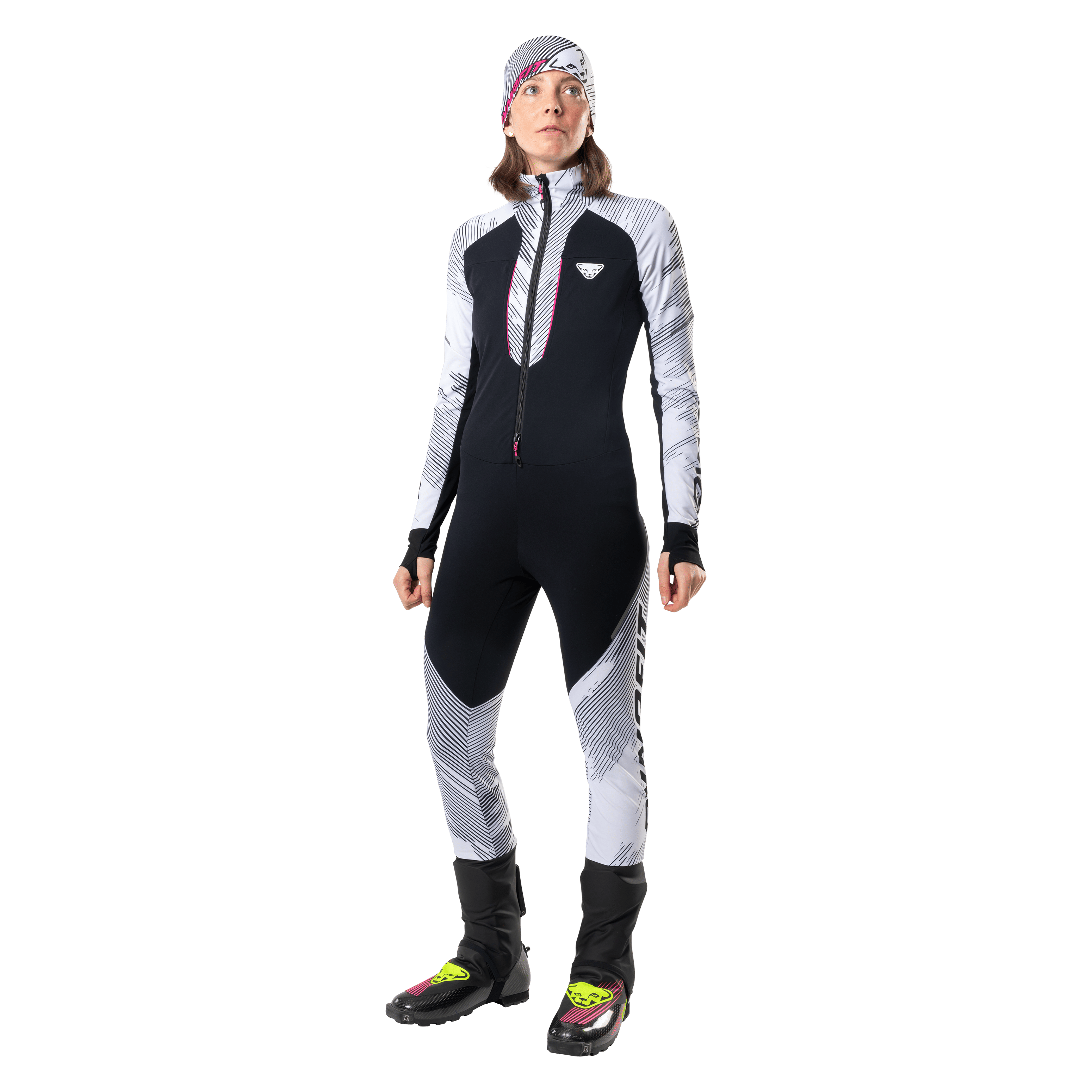 Une deuxième peau pour le sport de compétition – combinaison de course une pièce, avec système de ceinture de sac à dos intégré pour un accès libre à la poche pour les peaux. Avec la combinaison de course une pièce DNA pour femmes, bien pensée et performante, tu prends le départ de tes épreuves de ski­alpinisme avec une longueur d’avance sur tes concurrentes. La combinaison est conçue de manière à ce que les bretelles du sac à dos puissent être intégrées à la combinaison. Grâce à ce système innovant, tu accèdes rapidement à tes poches pour les peaux sans avoir à déplacer ou ouvrir la sangle de poitrine et la ceinture abdominale du sac, ce qui te fait gagner de précieuses secondes dans la lutte contre le chrono. La tenue DNA est fabriquée dans un tissu en nylon élastique et respirant qui assure une liberté de mouvement totale. L’intérieur est équipé de deux poches supplémentaires, dont une avec un compartiment à fermeture éclair pour le DVA. Des sangles à tendre sur les chaussures de ski empêchent la neige de pénétrer et permettent un bon ajustement des bas de jambes, qui ne risquent pas de glisser. Pour garantir une adaptation précise de la combinaison avec le reste de l’équipement, les renforts anti­carre aux bas de jambes sont dotés de dessins qui te montrent comment effectuer les découpes pour les boucles des différentes chaussures de compétition. Cela t’assure un accès direct aux boucles et permet de passer du mode Marche au mode Ski en un tour de main. Combinaison de course DNA – tout ce qu’il faut pour bien finir tes courses.