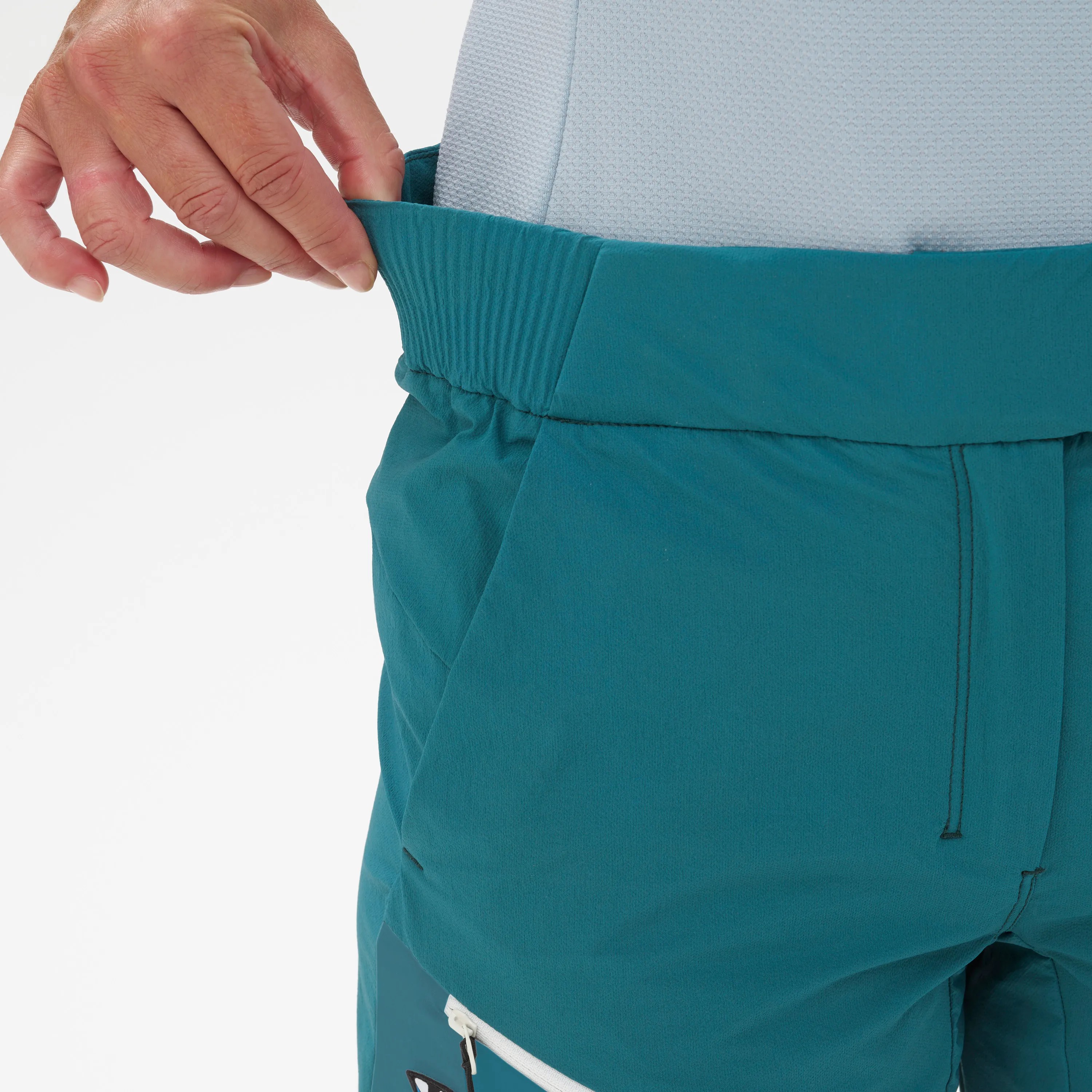 Détails Techniques 1 poche cuisse zippée 2 poches pour les mains Blouse latérale confortable à la taille Coupe féminine active et sportive Empiècement ergonomique sur le bas du dos Longueur de l'entrejambe : 16,4 cm/6,5 pouces Patte de réglage élastique à la taille Tissu déperlant avec traitement DWR sans PFC tissu extensible dans les 4 sens