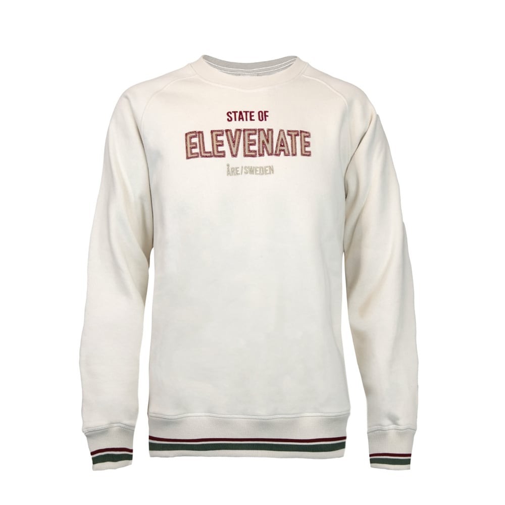 Détails Techniques Application Elevenate sur la poitrine. Col ras du cou côtelé. Fabriqué au Portugal. Poignets et ourlet côtelés avec rayures contrastées. Sweat-shirt en jersey épais en mélange coton biologique/polyester.