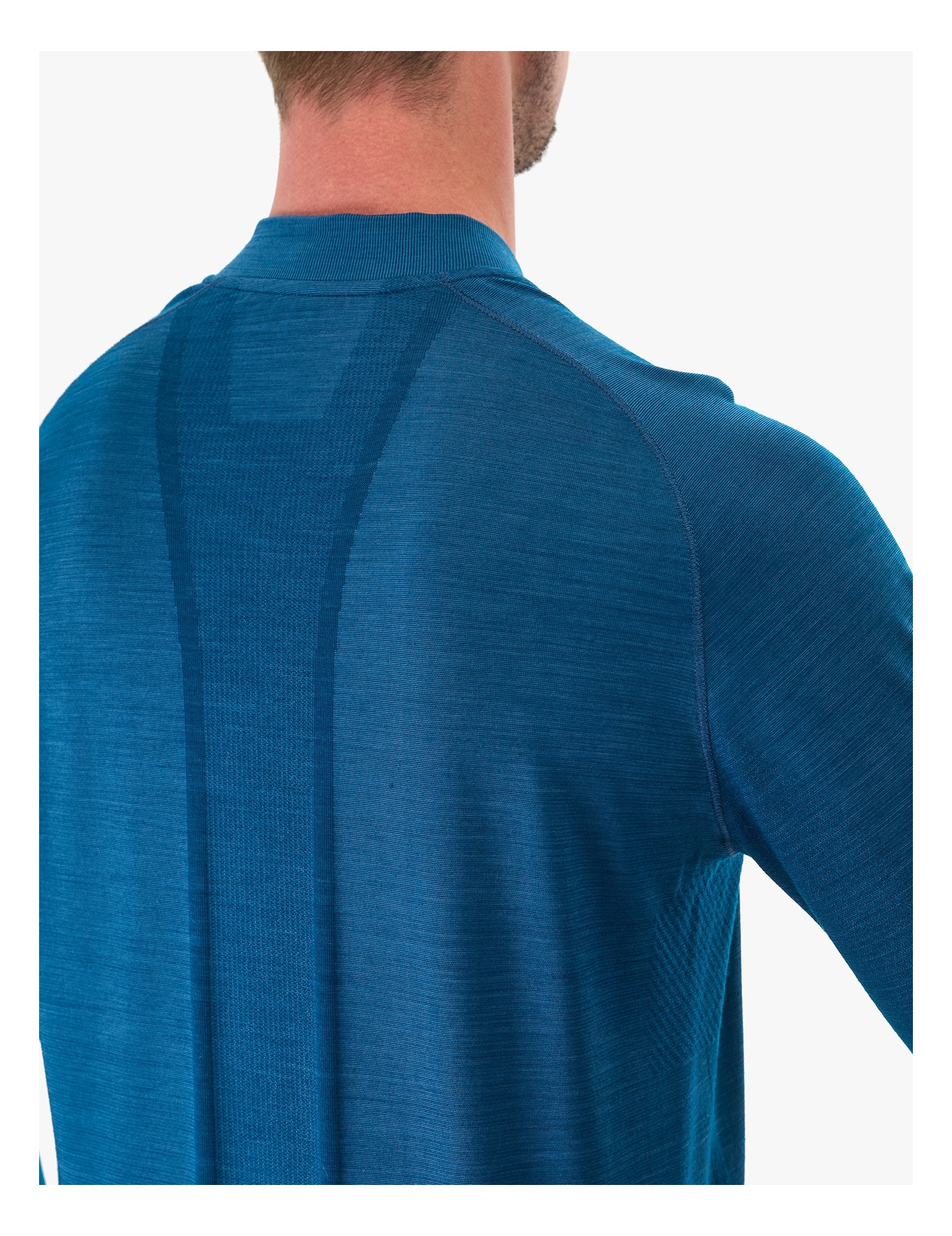 Le mélange astucieux de laine mérinos et de polyamide assure une thermorégulation naturelle, équilibrant chaleur et respirabilité pour les efforts intenses des jours de grand froid. La cartographie corporelle innovante offre des panneaux en mesh stratégiquement placés le long de la colonne vertébrale et des bras pour une circulation optimale de l`air là où vous en avez le plus besoin. Les poignets ajustés et la coupe cintrée garantissent un ajustement confortable et proche de la peau, tandis que la demi-fermeture éclair autobloquante pratique peut être ouverte pour une ventilation supplémentaire lorsque l`intensité augmente ou remontée dans un col protecteur plus haut lorsque la température baisse. Les manches raglan sont ajustées pour permettre des mouvements efficaces, sans excès de matière qui pourrait gêner le passage des bâtons ou du sac à dos.