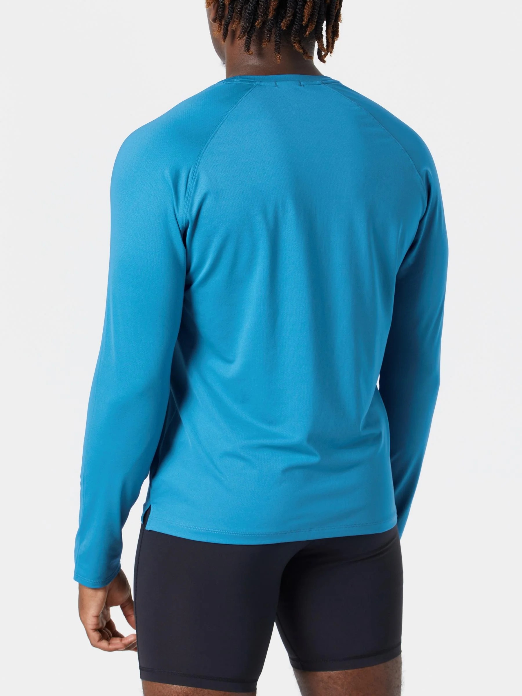 Détails Techniques Boucle de suspension interne Col ras du cou à manches longues Finition antimicrobienne résistante aux odeurs Indice UPF 50+ Manches raglan Étirement dans les 4 sens Évacuation de la transpiration et séchage rapide