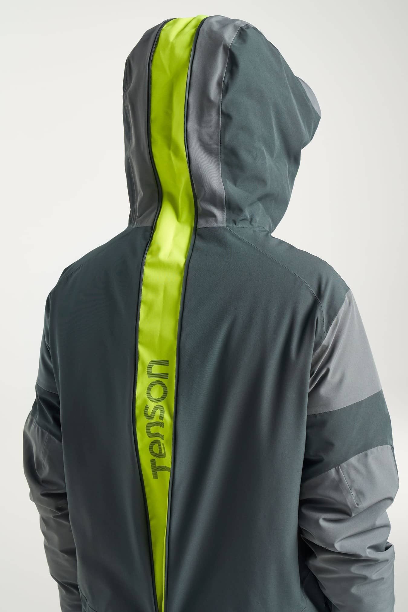 Elle est dotée d'une fermeture éclair unique dans le dos, avec des détails fluo pour une meilleure visibilité et l'adaptation d'une protection dorsale, ainsi que d'une capuche extensible qui s'adapte au casque.