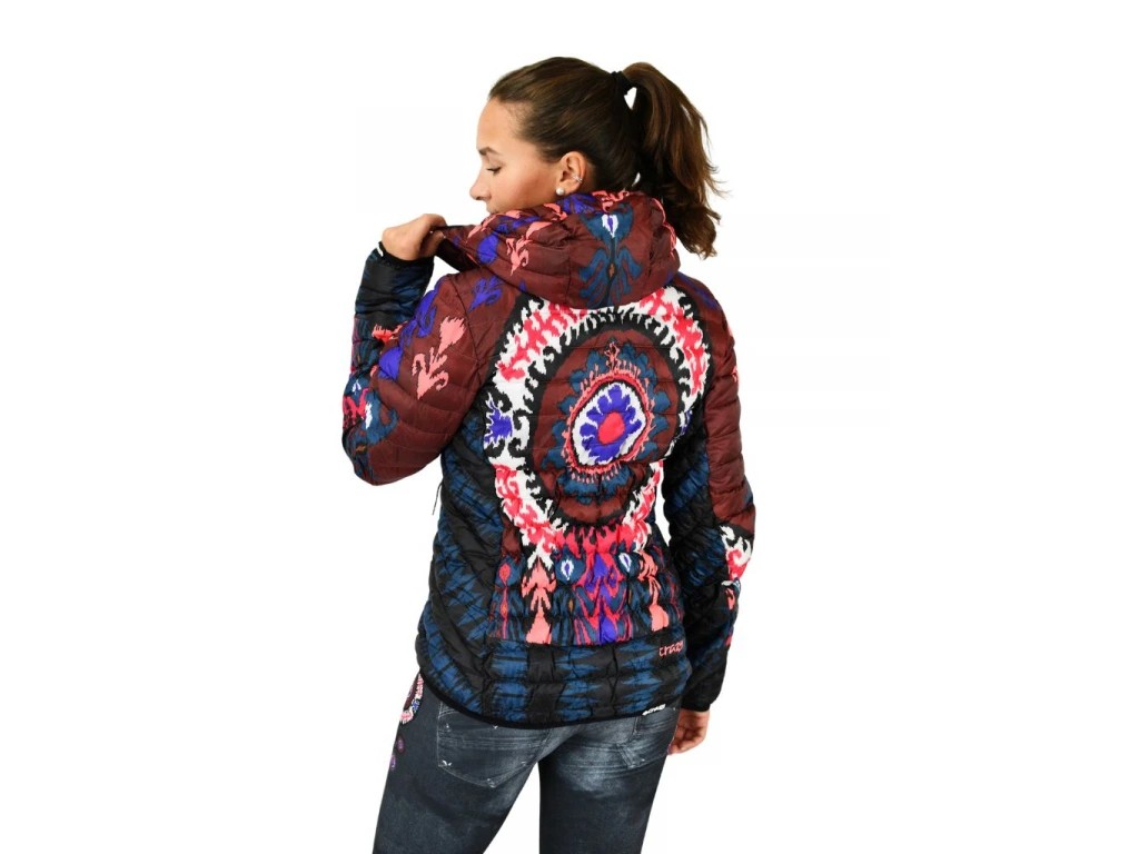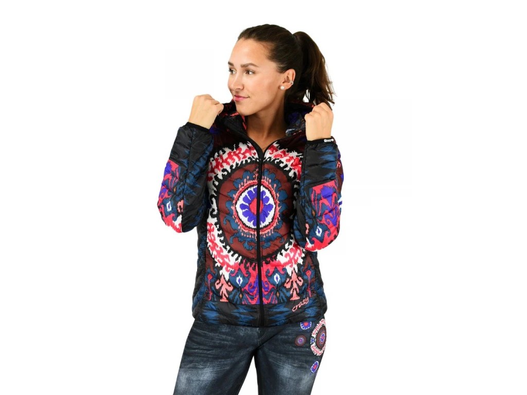 La veste Wonder est confectionnée en tissu technique Pertex Quantum 20 deniers, léger, doux et coupe-vent, entièrement imprimé des motifs emblématiques de Crazy.