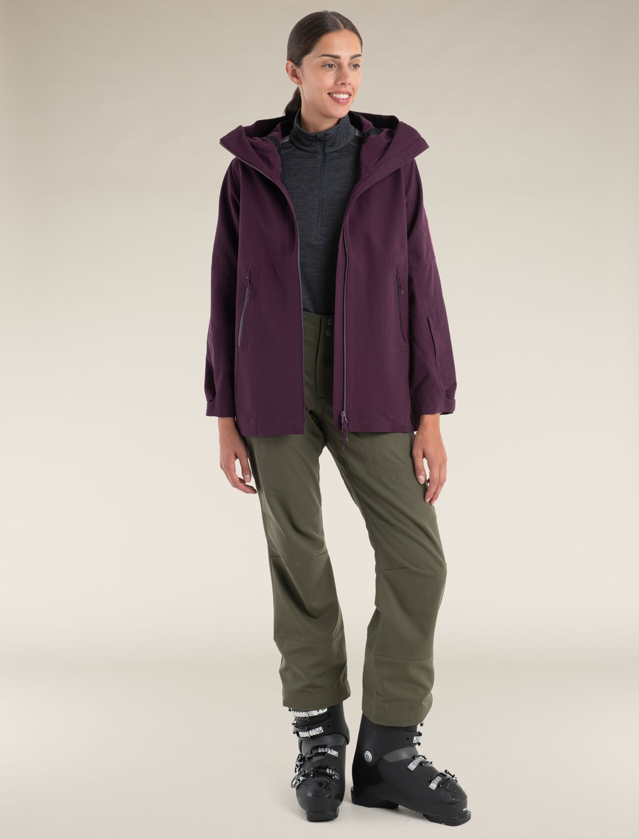 articulées pour une grande liberté de mouvement, et de plusieurs poches zippées, dont une pour le forfait de ski. Elle représente une alternative durable